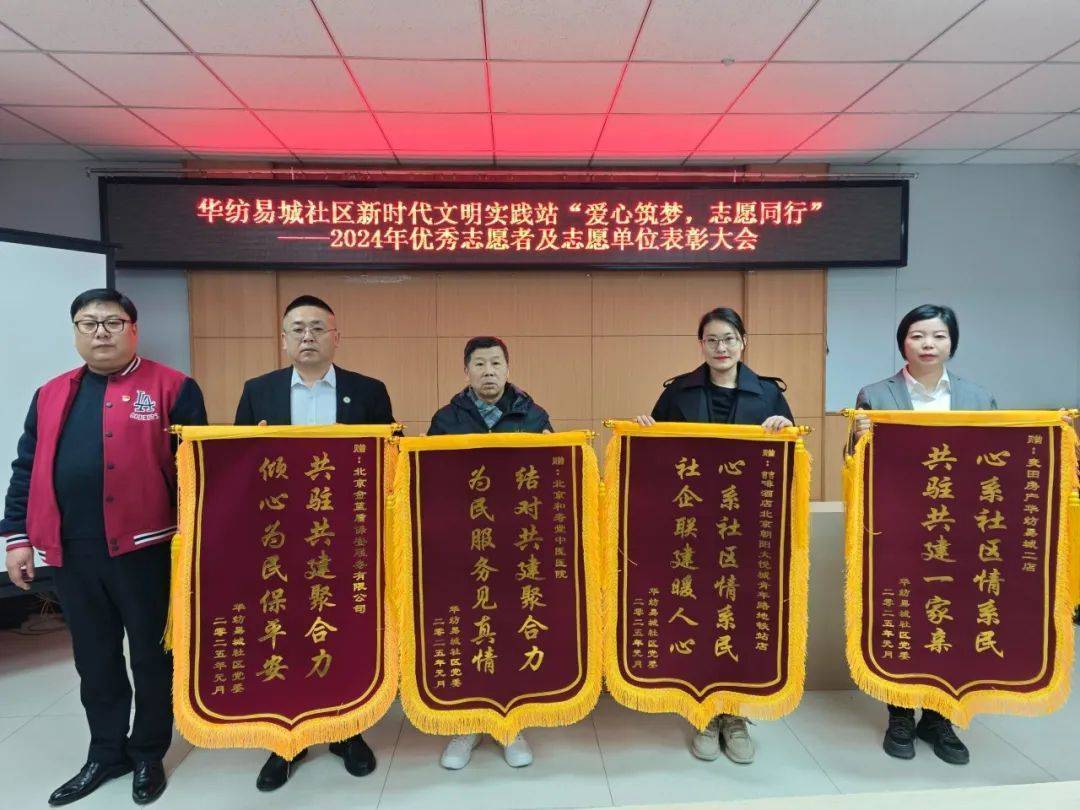 近日,朝阳区平房地区华纺易城社区内洋溢着温馨与喜悦的氛围,一场以“爱心筑梦,志愿同行”为主题的2024年优秀志愿者及志愿单位表彰大会在此隆重举行。在这场旨在表彰过去一年中为社区发展做出突出贡献的志愿者和组织的盛会中,北京麦田房产华纺易城门店凭借其卓越的志愿服务表现和积极的行动,荣获了大会的嘉奖,成为全场瞩目的焦点。